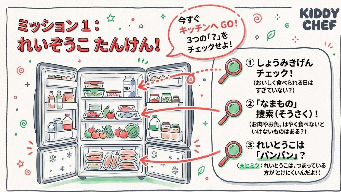 実際に、自分の家の冷蔵庫を見に行き